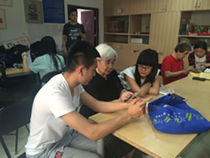 这一学期快要进入尾声了,服务队在这次活动中进行了期末串讲的第一讲,带领学员们进行复习。我们教授过学员们手机的基本操作,包括电话、短信、手机通讯录、相机的使用,还有手机APP的下载与使用,例如手机地图,手机记账APP,以及最受老年人青睐的微信。复习串讲主要针对学员各自在学习复习的过程中遇到的问题进行解答,并加以巩固,由学员自行操作,志愿者发现问题并为老人解决问题。学员们的学习效果不错,有部分学习板块有些问题,在志愿者的帮助下顺利得到了解决。