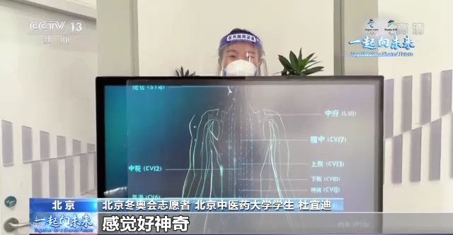北京冬奥会志愿者、北京中医药大学学生杜宜迪:大家好!我叫杜宜迪,来自北京中医药大学,现在是大四的一名学生。很有幸能够成为一名冬奥志愿者,我是从今年1月23日就已经上岗了,我服务的岗位是北京冬奥村“10秒中医药体验馆”。